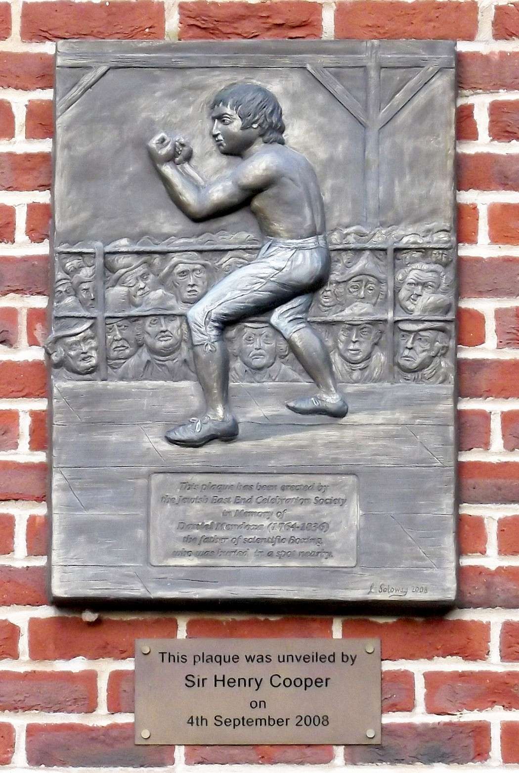 This plaque has been erected by the Jewish East End Celebration Society in memory of Daniel Mendoza (1761 - 1836) the father of scientific boxing who was buried in a spot nearby